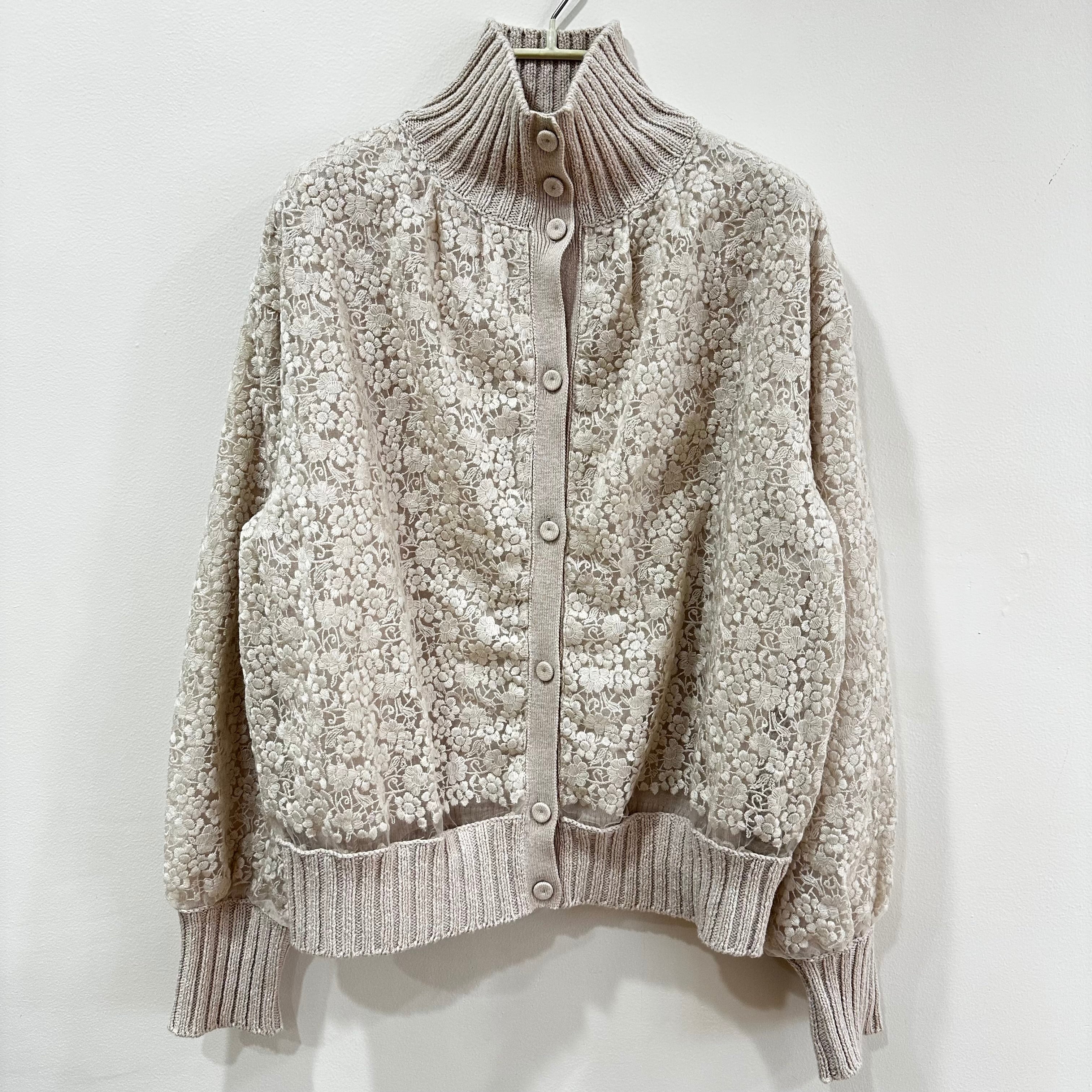 KNIT BLOUSON with EMBROIDERY FABRIC
